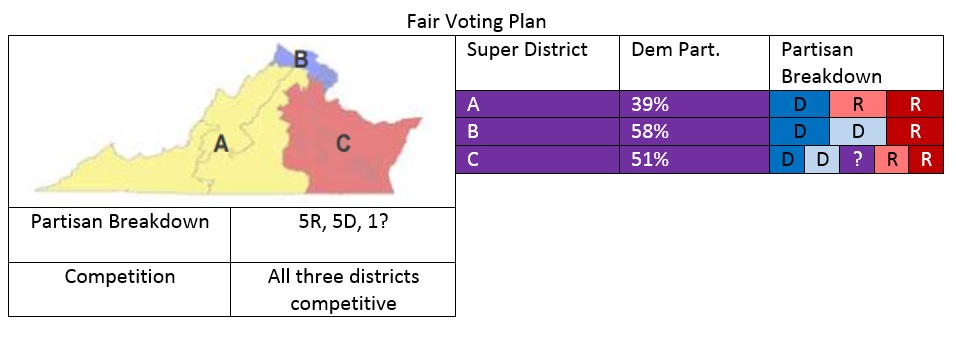 By simply combining districts into multi-winner super districts and electing officers with ranked choice voting, Virginia could have fair representation and universally competitive elections.